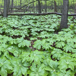 There are 25 species of trees (all native), 20 species of native shrubs, and approximately 100 native herbaceous (groundlayer) plant species. The groundlayer includes an extremely diverse mix of spring ephemeral species that peak in their display in May and early June. Only seven (7) exotic plant species have been recorded within Fitzsimmons Woods, making it one of the most intact and undisturbed woodlands in Southeastern Wisconsin.
