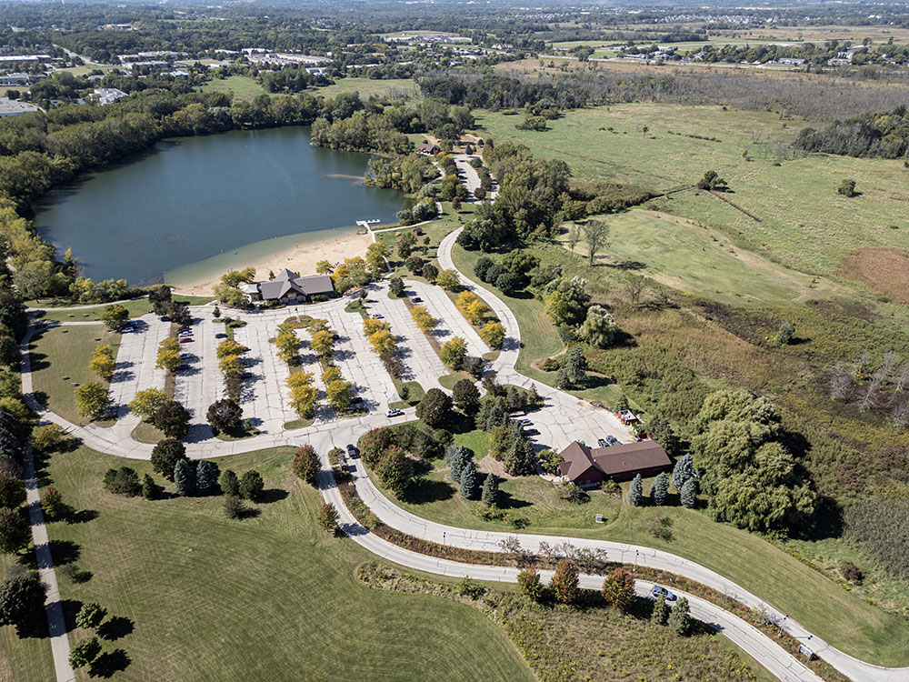 Located on Barker Road just south of Capitol Drive in Brookfield. The 223-acre park includes 178 acres of wetlands preserved and protected as a natural habitat and open space. This habitat attracts many bird species, such as gold finches and indigo buntings. The main feature of this park is a 25-acre man-made lake with a beach and lodge. A one-mile paved trail curves around the lake, with three wildlife viewing areas. Identified as an ebird hotspot.