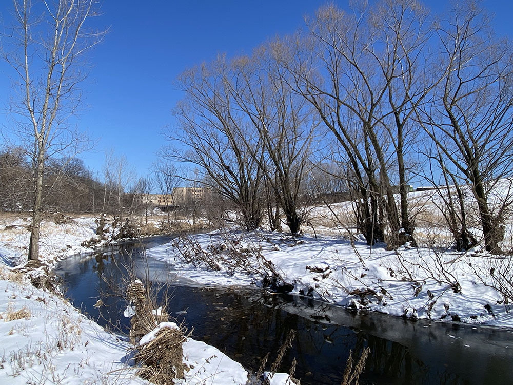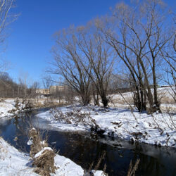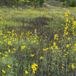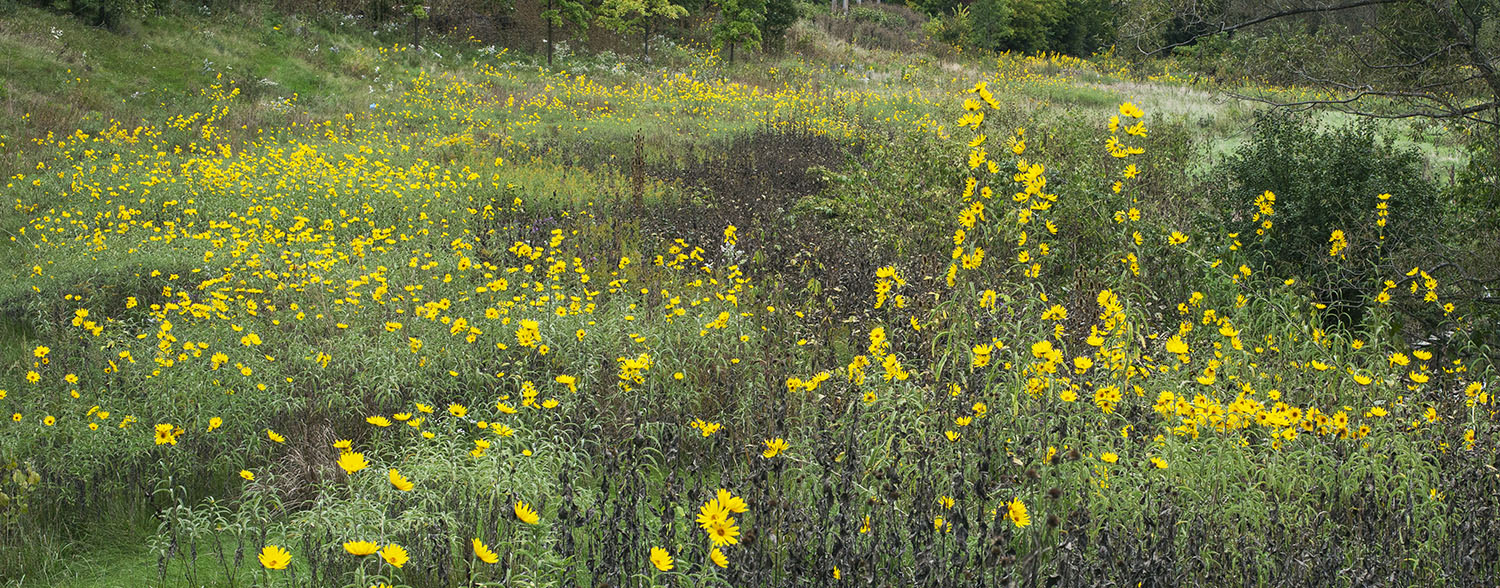 There is a short trail leading into the property from the trailhead at the intersection of Hopkins and Congress. A pair of “peace poles” crafted by a local artist identifies the trailhead. It is easy to continue walking beyond the trail terminus to explore the rest of the property. Nearby Nature MKE has been rehabilitating the land and restoring native vegetation, including yellow prairie coneflower, wild bergamot (bee balm), prairie clover and Jerusalem artichoke. A Southeastern Wisconsin Regional Planning Commission Rare Plant Specialist surveyed a large section of the hollow and identified close to 100 plant varieties.