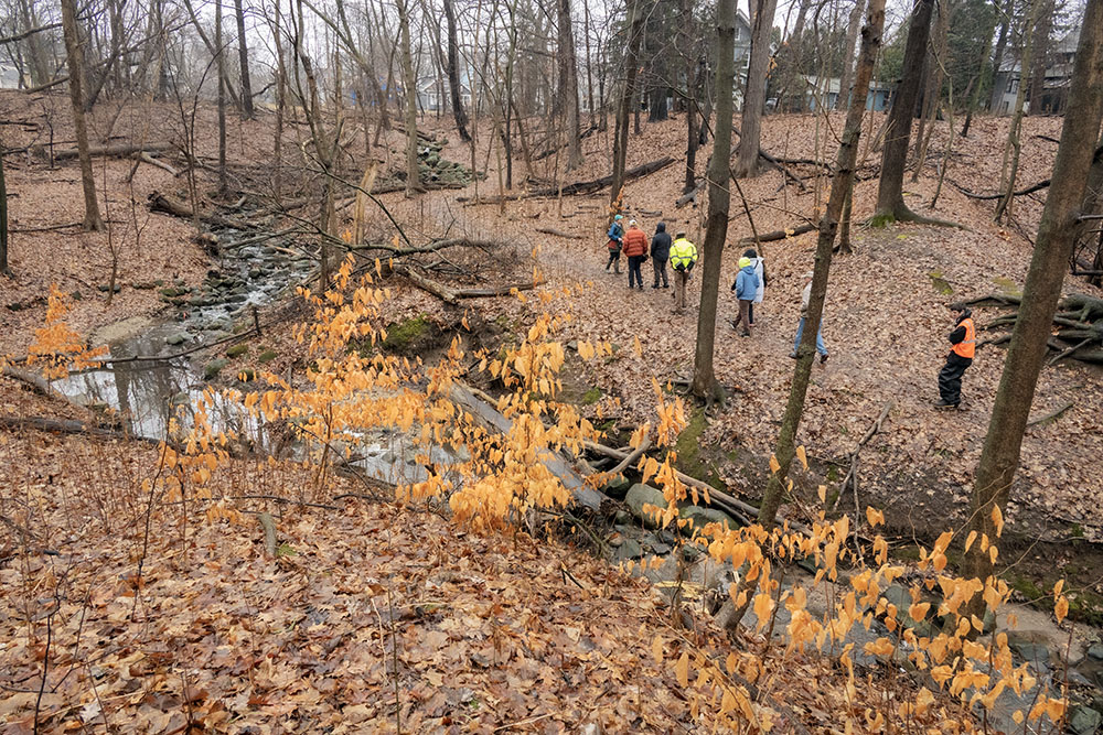26-acre Milwaukee County park with a mile-long nature trail, which has been designated as a National Recreation Trail as well as a segment of the County’s Forked Aster Trail system. The terrain includes a dramatic bluff, ravine, and a small lily-covered lagoon. Home to several rare plant species as well as many old growth oaks and maples. The park is especially colorful in spring when the ephemeral flowers are in bloom and in fall when autumn paints the tree canopy red, orange and gold.