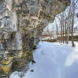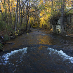 Smack in the middle of downtown, this 19-acre Village of Menomonee Falls park spans both sides of the Menomonee River between Main Street and Arthur Avenue. The park is named after the Garwin Mace Lime Kilns which operated on the site in the late 19th century. A paved multi-use trail runs the length of the park, leading visitors past the preserved lime kilns, rock outcroppings, and the namesake Menomonee Falls. The narrow gorge between rock outcroppings has been called the “dells of the Menomonee River.”