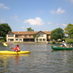 - Blatz Pavilion and canoes on Milwaukee River