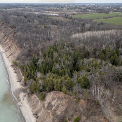 The Park has ½-mile stretch of cliffs reaching 100 feet overlooking the shoreline. Hiking trails thread throughout the preserve.