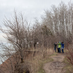 - Birders on bluff trail