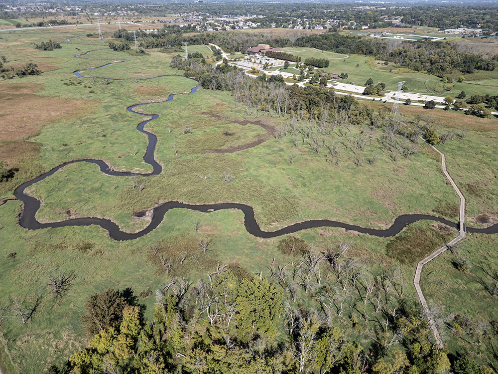 At 405 acres, this City of Brookfield park has enough room for a plethora of amenities as well as plenty of open natural areas. Approximately 90 of those acres are used for active park facilities. The remaining acreage encompasses a variety of wetland, woodland, and surface water resources within the primary environmental corridor along the main stem of the Fox River.The largely flat terrain has a system of bike and foot paths, which accommodate cross country skiing in the winter. There is a manufactured hill for sledding in the winter. There are access points on the river for canoes or kayaks. Bike paths connect to the Brookfield Greenway Trail System and to Waukesha County’s Fox Brook Park.