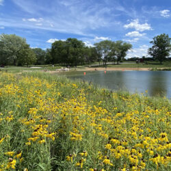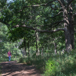 Located within the Mukwonago River watershed, which is among the cleanest and most biologically diverse in southeastern Wisconsin, Mukwonago Park is comprised of 355 acres of remnant oak savanna and woodland, dry-mesic prairie, and spring-fed wetlands. A high glacial ridge that stretches nearly the entire length of the park is covered with pre-settlement vegetation including several hundred-year-old oaks and carpets of shooting stars in spring. Over 4 miles of hiking trails wind throughout the park, traversing colorful prairies and shaded oak forest.