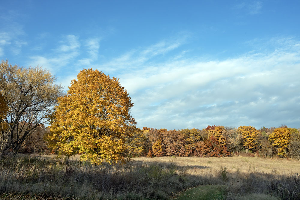 Located within the Mukwonago River watershed, which is among the cleanest and most biologically diverse in southeastern Wisconsin, Mukwonago Park is comprised of 355 acres of remnant oak savanna and woodland, dry-mesic prairie, and spring-fed wetlands. A high glacial ridge that stretches nearly the entire length of the park is covered with pre-settlement vegetation including several hundred-year-old oaks and carpets of shooting stars in spring. Over 4 miles of hiking trails wind throughout the park, traversing colorful prairies and shaded oak forest.