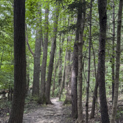 Trails include the 1.2-mile Red Trail, which creates a long loop around the perimeter of the preserve; the .8-mile Blue Trail loop; and the .6-mile, very steep Green Trail.