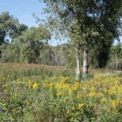 This 18-acre woodland with an accessible trail system sits at the far end of the much larger (75-acre) Mequon Rotary Park. Invasive buckthorn has been managed with the use of goats so successfully that the spring ephemerals have bounced back spectacularly. Spring flowers include wild geranium, iris, jack-in-the-pulpit, spring beauties, Jacob’s ladder, trillium, wild strawberry, buttercups, bluebells, and several varieties of violet. The woodland includes a remnant oak savanna and a meadow.