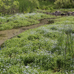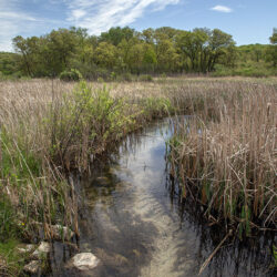 The Scuppernong Springs Nature Trail is a 1.5-mile loop within the Southern Unit of the Kettle Moraine State Forest. The parking lot and trailhead are directly across Hwy ZZ from Ottawa Lake Recreation Area. The main attraction is a complex of many springs around a small dell at the headwaters of the Scuppernong River. While some of the springs seep out from the slopes surrounding the dell, others visibly bubble up from the silt in the river (which is a small creek at this point). However, the area within and around the trail also contains a remarkable and surprising number of distinct ecosystems and plant communities. These include Southern Dry Forest, Sand Prairie, Wet-mesic Prairie, Calcareous Fen, Southern Sedge Meadow, Oak Savanna and ephemeral ponds. The high quality of these communities has led to a great diversity of species thriving within a relatively small area.