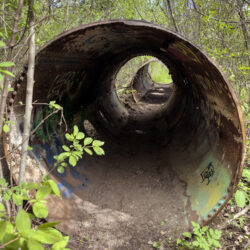 The trail also has a rich human history. Remnants of various activities can be seen along the trail, including a short section of the railroad that once led into the area. A long, narrow pond marks the spot where calcium-carbonate-rich marl was extracted and some ruins remain of the marl processing plant that operated there. A DNR guidebook for the self-guided trail describes much more of the history.