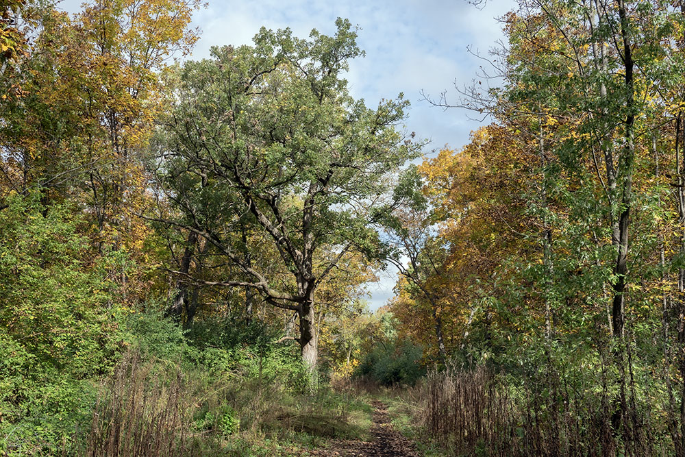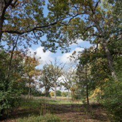 Currently the park has a multi-use partially paved trail loop around a large restored prairie and a single one-way trail into a wooded area.