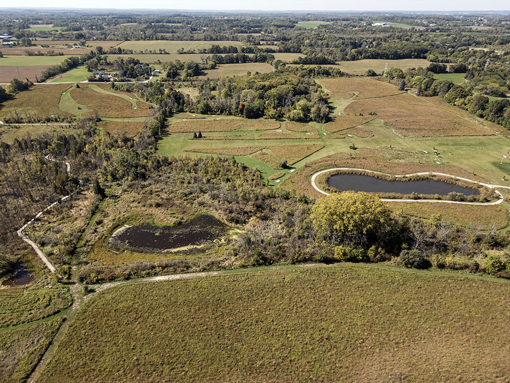 This 122-acre Ozaukee County Park has a diversity of terrains, including grassland, upland woodland and a forested wetland. A boardwalk leads through the wetland, which contains white cedars and marsh marigold (in spring.)