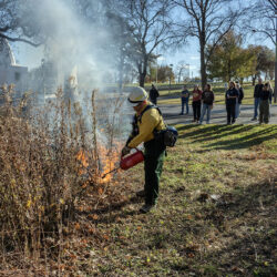 Burning Washington Park, a prescribed burn conducted by the Urban Ecology Center to help control in invasive species and encourage native growth.