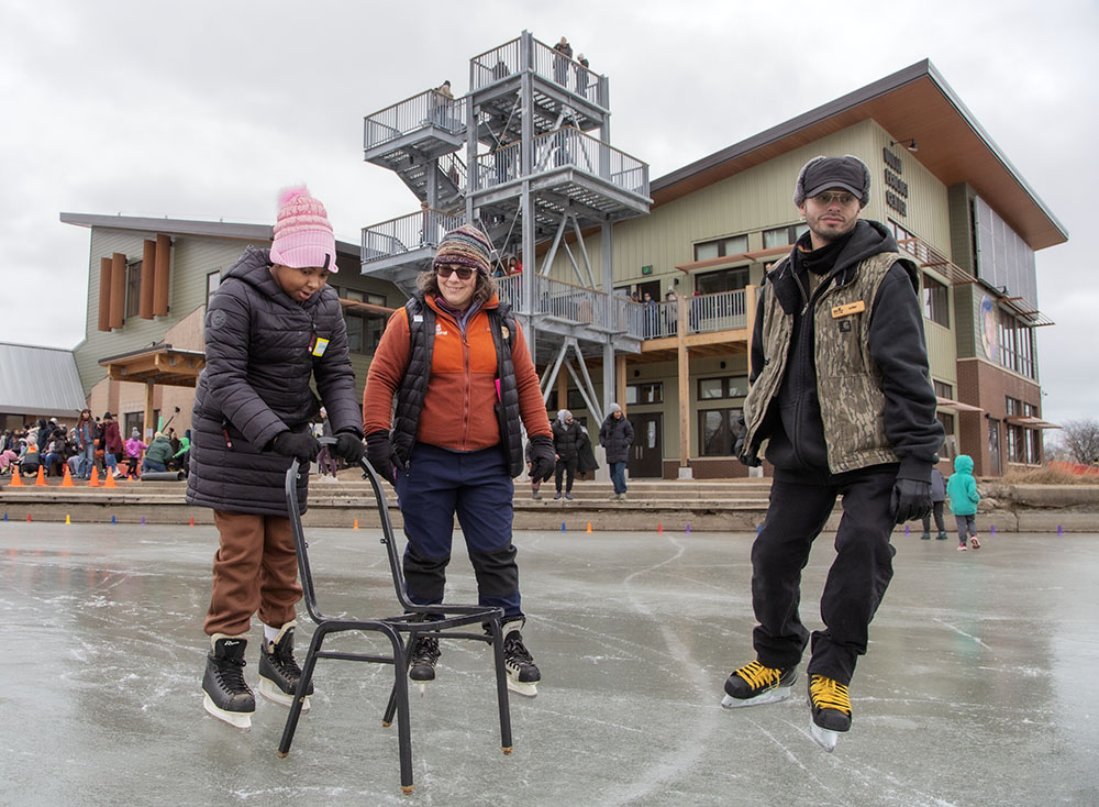 Home to one of three branches of the Urban Ecology Center, which manages the park’s natural areas, offers educational opportunities, and lends out canoes and kayaks to members for use on the park lagoon, as well as other kinds of equipment.